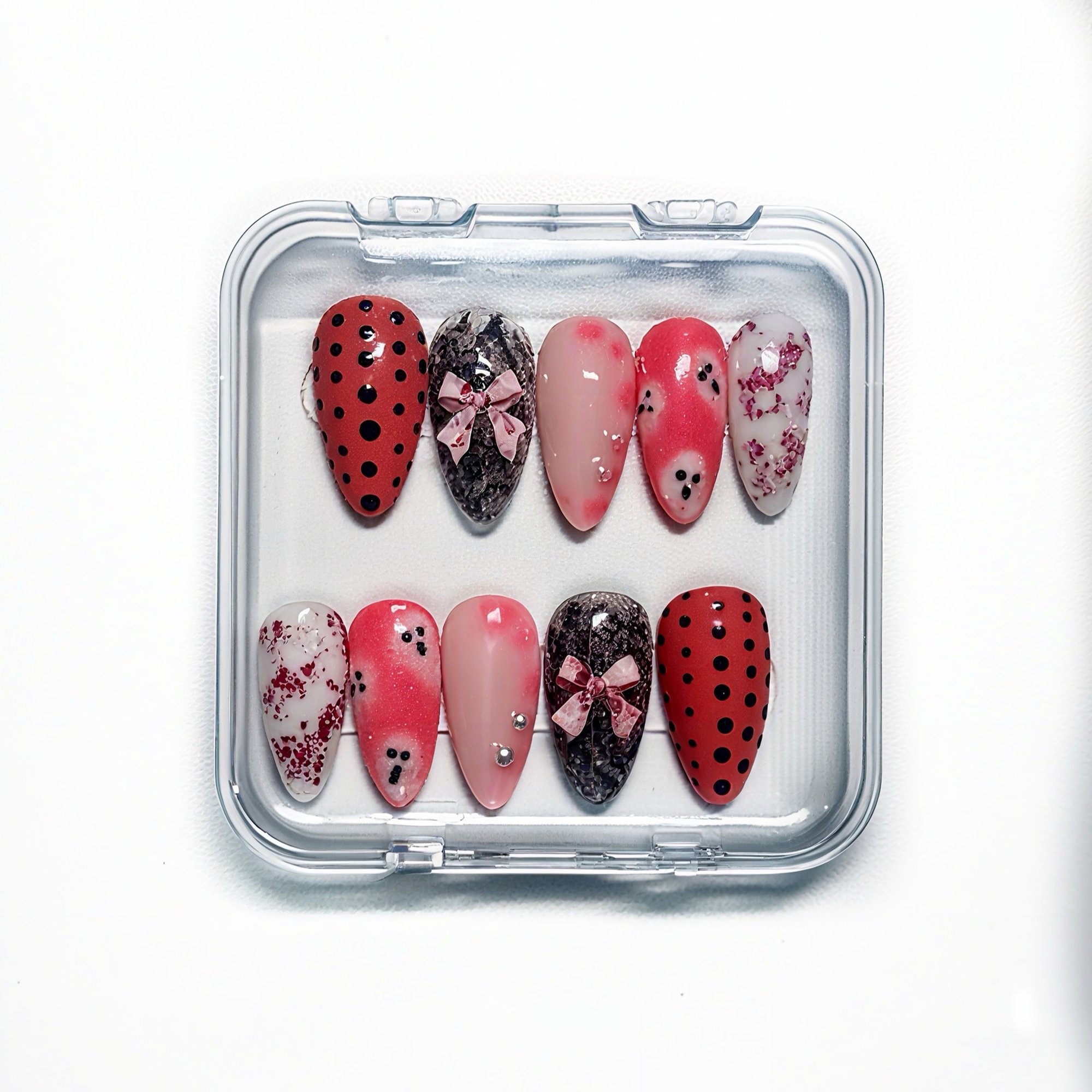 Akimirksniu pakeiskite savo įvaizdį su mūsų rankų darbo priklijuojamais nagais, sukurtais patogumui, stiliui ir ilgam dėvėjimui. Nesvarbu, ar norite drąsaus įvaizdžio, ar subtilios kasdienės elegancijos – šie nagai yra lengvai užklijuojami, pakartotinai naudojami ir švelnūs jūsų natūraliems nagams.